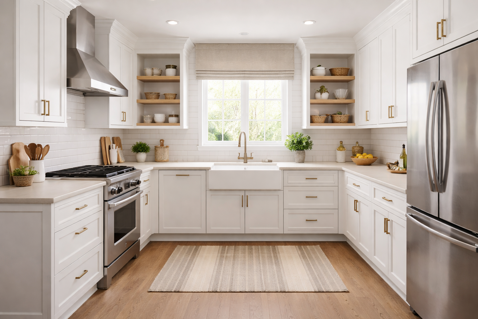Yes! With thoughtful planning, a U-shaped layout can fit beautifully into compact kitchens. Our team optimizes corner storage, vertical cabinets, and lighting to create a sense of openness while maintaining functionality and flow.